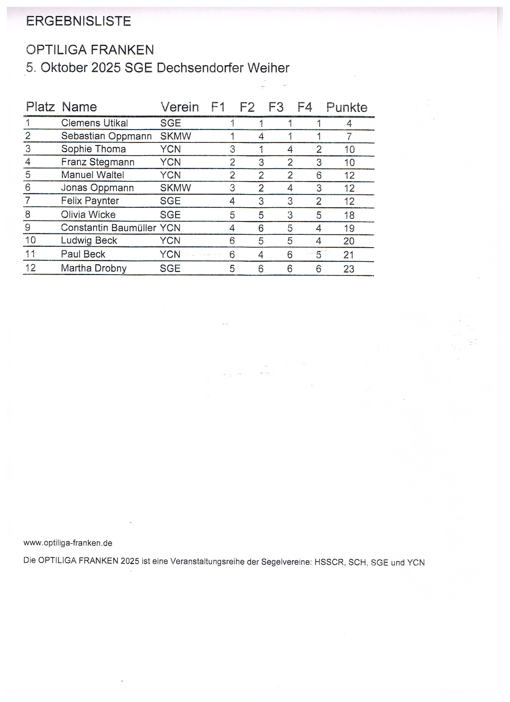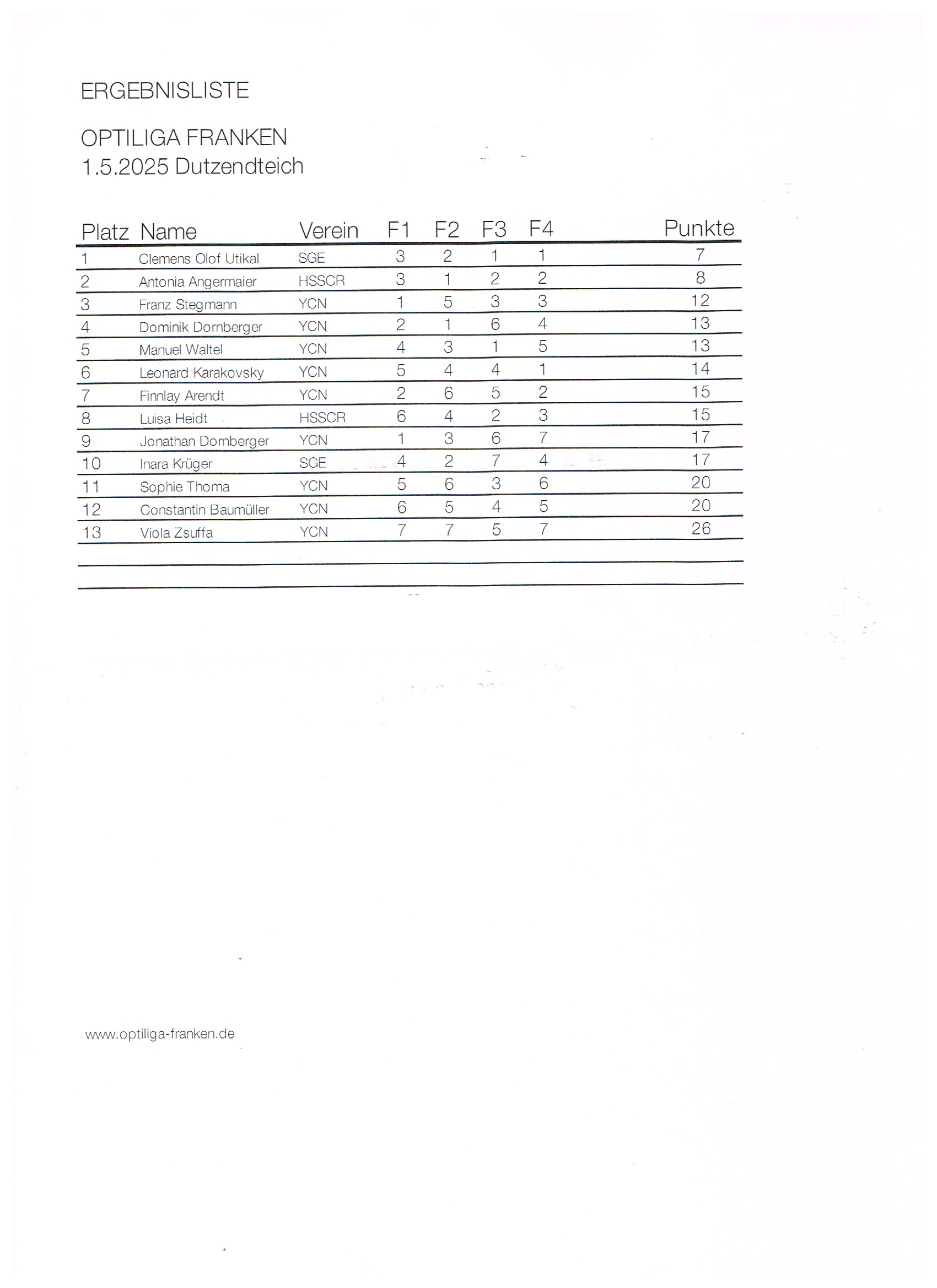 Die OPTILIGA FRANKEN ist eine Veranstaltungsreihe der Segelvereine: 1.WSC, HSSCR, SCH, SGE und YCN. Hier die Ansprechpartner: